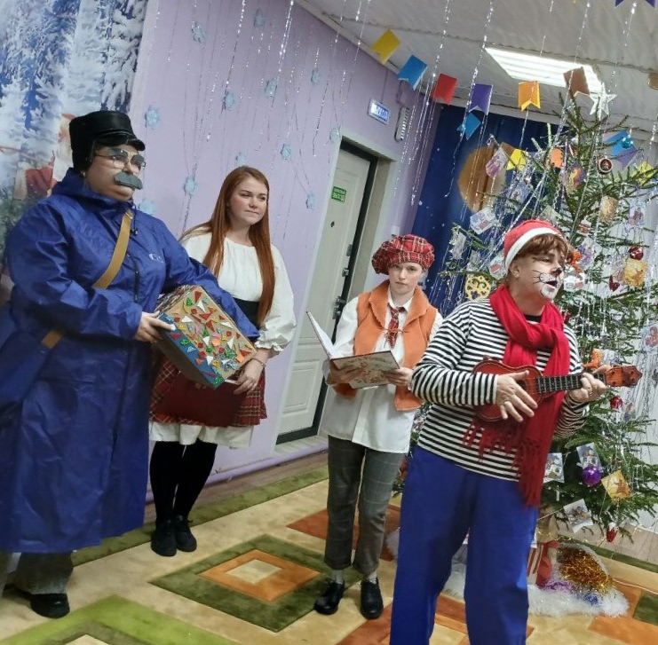 24 декабря в отделении приюта прошел яркий, запоминающийся новогодний праздник "Новогоднее путешествие в Союзмультфильм ".На праздник пришли герои сказок из мультфильмов в нарядных костюмах.